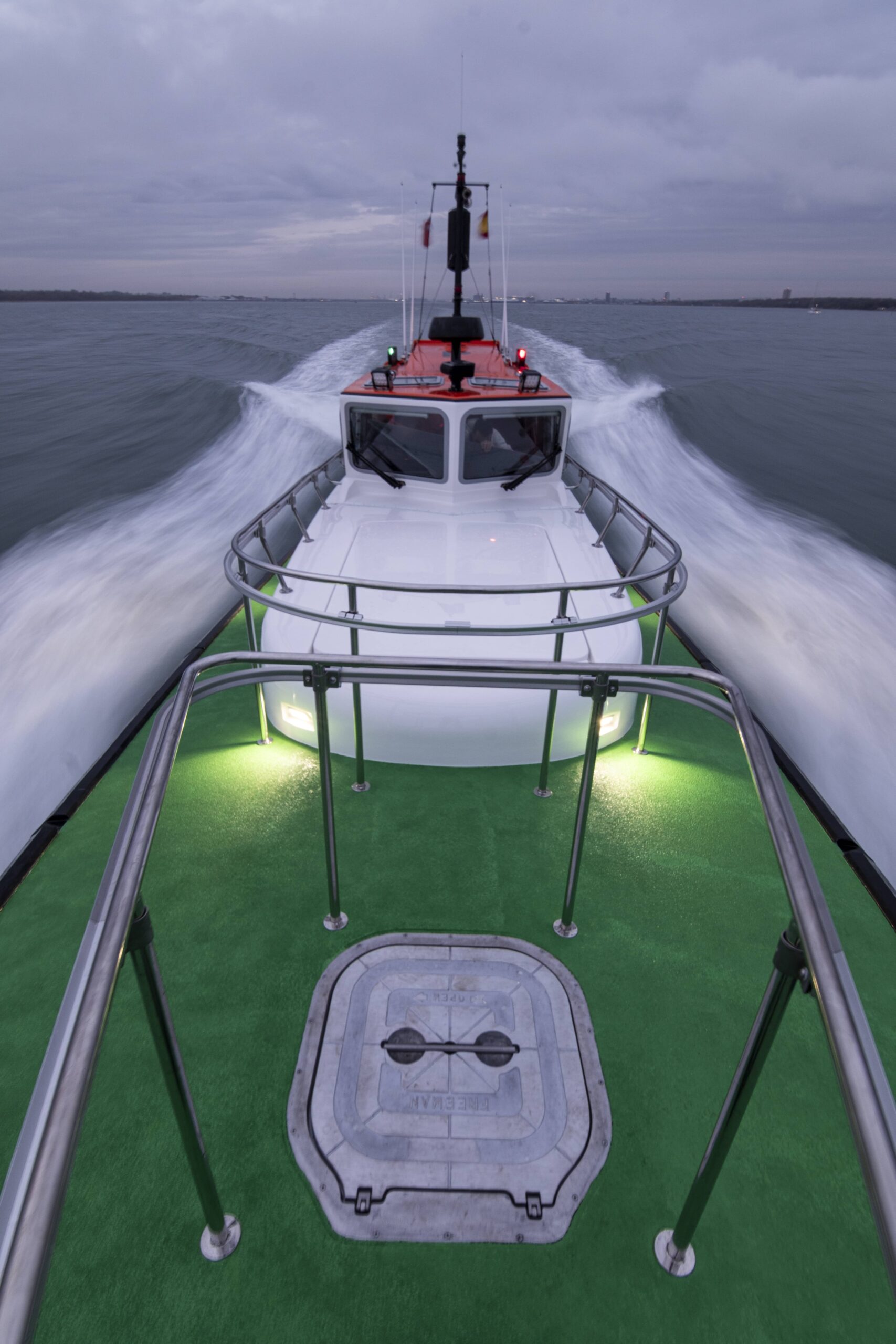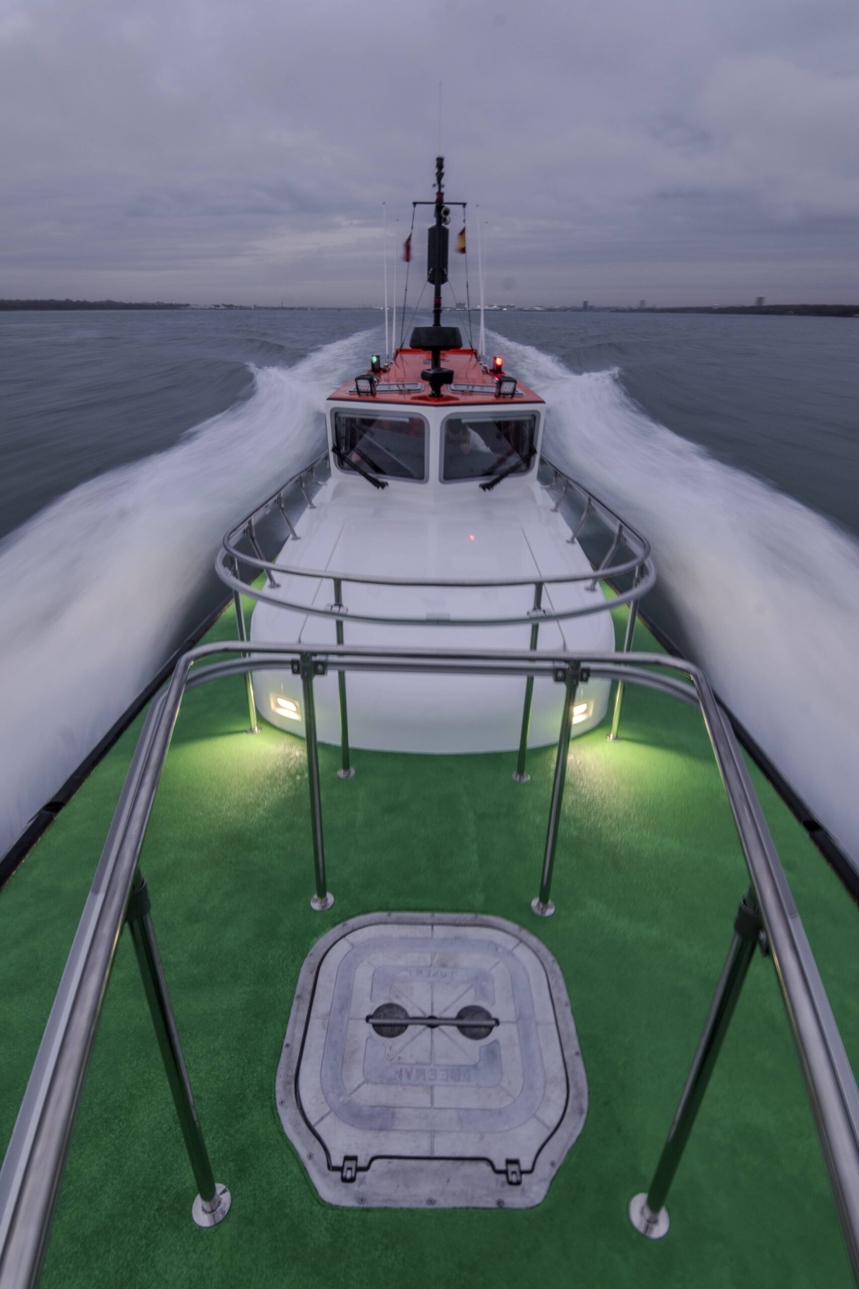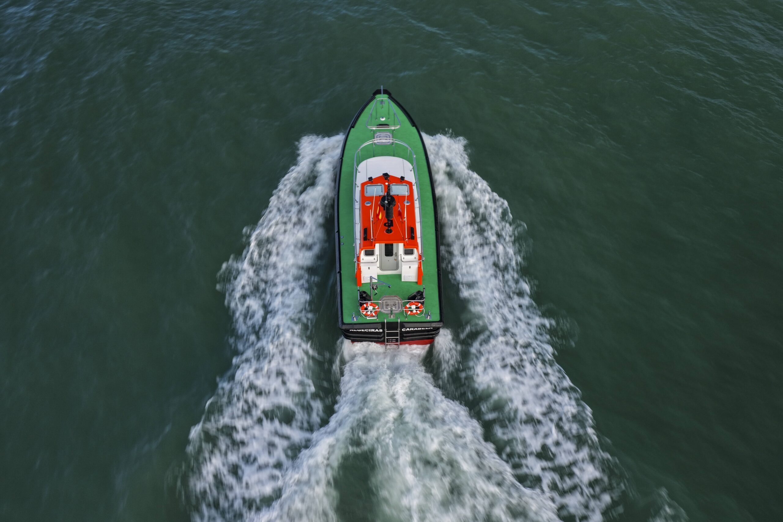 Esta nueva embarcación de última generación, se ha diseñado conforme a los más altos estándares de seguridad y eficiencia. Dotada de doble motorización Volvo Penta y con una velocidad máxima de 35 nudos, ofrece una respuesta rápida y segura en todo tipo de condiciones operativas, optimizando el consumo y reduciendo el impacto ambiental. Se trata de una embarcación ágil, potente y altamente fiable, plenamente adaptada a las exigencias actuales del servicio de practicaje.